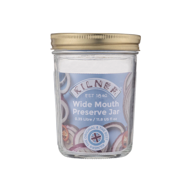 Банка для консервування Kilner® 0,35 L (0025.898) з широким горлом, ідеально підходить для зберігання та консервування здорової домашньої їжі. Має двокомпонентну кришку, що складається з жерстяного диска та гвинтової стрічки, що забезпечує надійне вакуумне ущільнення, зберігаючи вміст свіжим довше. Місткість банки становить 0,35 літра/350 мл, що ідеально підходить для консервування цілих фруктів та овочів, оскільки ширший отвір дозволяє легко наповнювати та переливати.