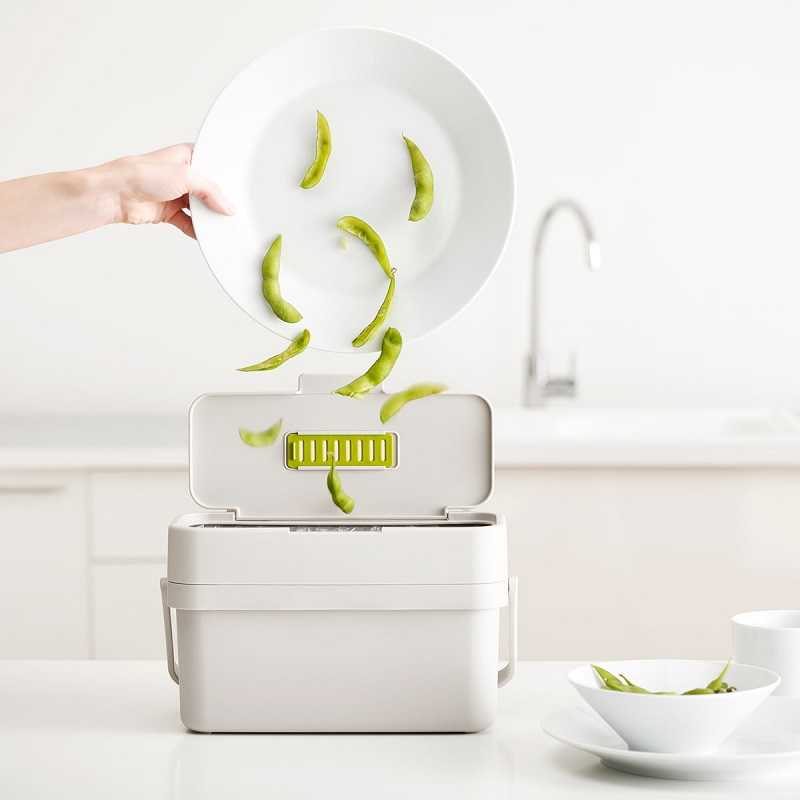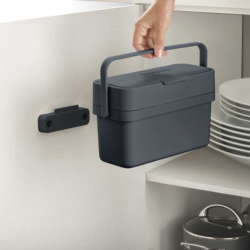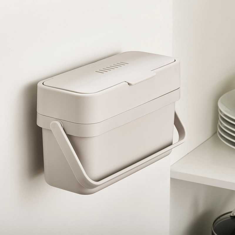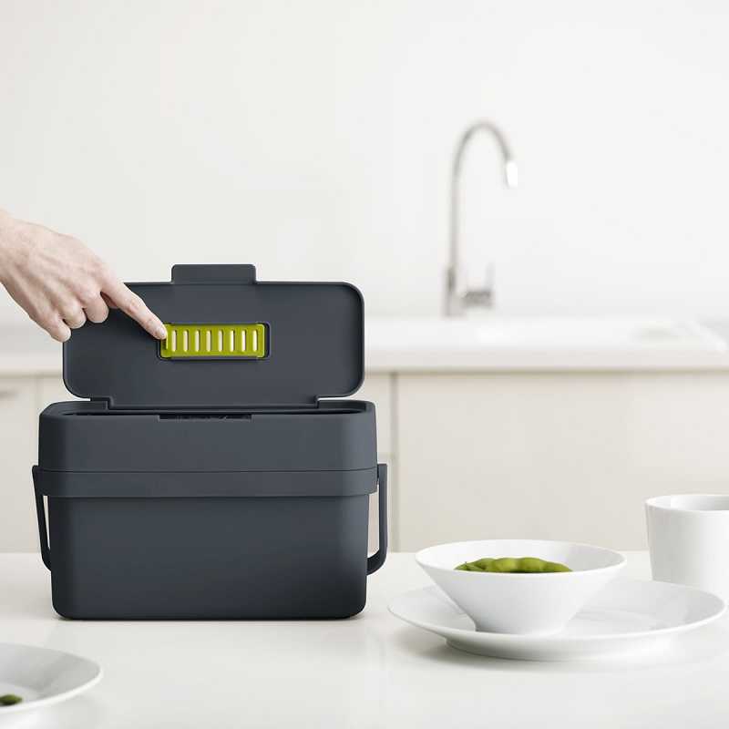 Контейнер для харчових відходів Joseph Joseph Compo™ 4 (30107) спеціально розроблений для видалення залишків сміття. Його подовжена форма, практична відкидна кришка та дуже широкий отвір ідеально підходять для збирання залишків тарілок. Завдяки тонкій конструкції відро для сміття ємністю 4 л можна легко розмістити на робочій поверхні або в кухонній шафі. З підвіскою, що входить у комплект поставки, відро для сміття також знаходить практичне місце на стіні або всередині дверцят кухонної шафи.