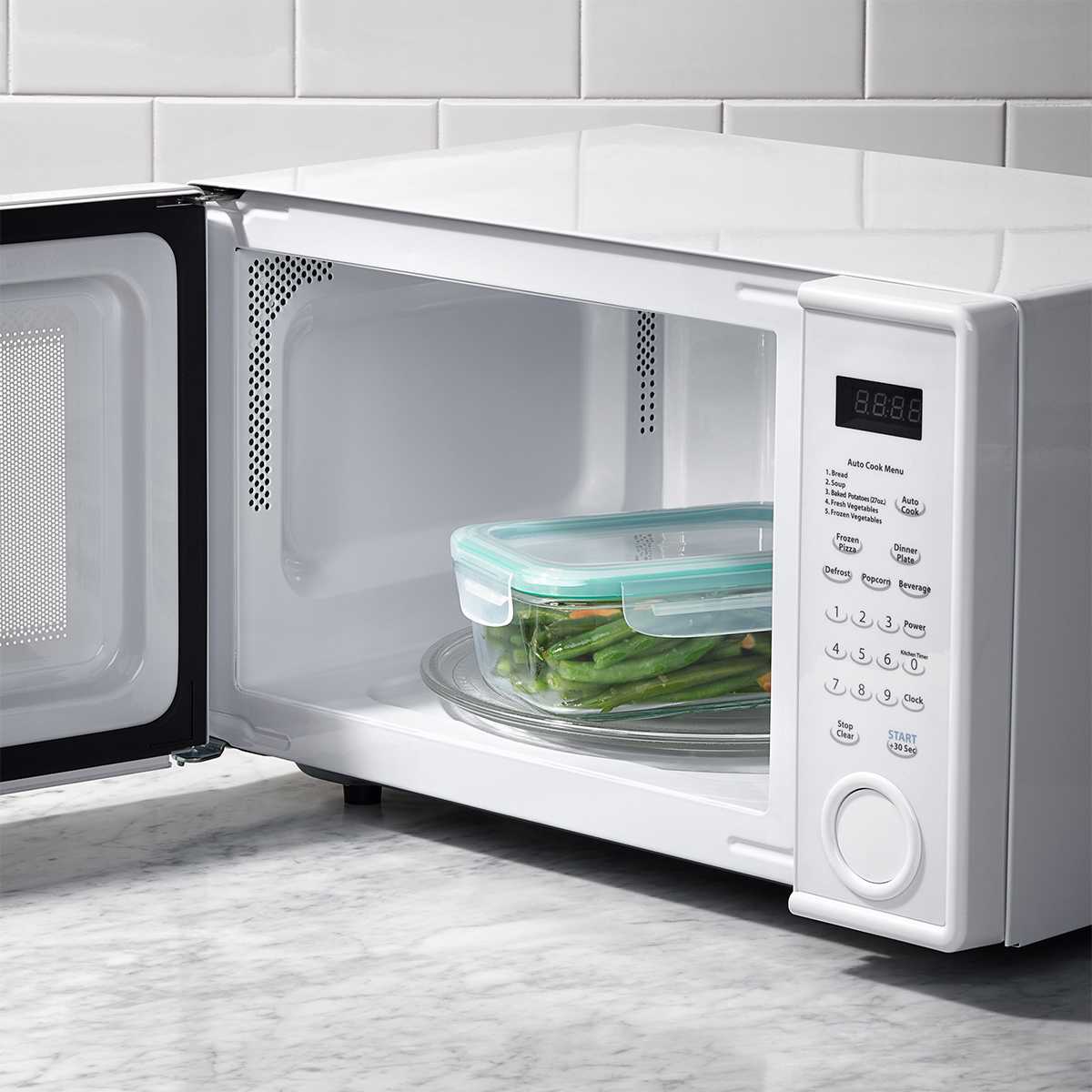 Можна використовувати в мікрохвильовій печі та духовці (обов'язково після зняття кришки).