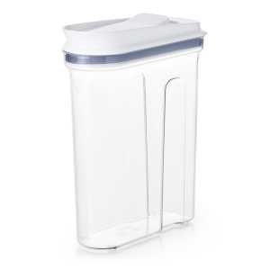 Контейнер Oxo Good Grips 1,5 L (11247600MLNYK) предназначен для хранения сухих сыпучих продуктов. Благодаря большой вместимости он идеально подходит для хранения сыпучих продуктов, таких как мюсли, печенье, мюсли, крупы, горох и многие другие. Крышка контейнера частично откидывается, открывается легким нажатием на профилированную кнопку. Крышка и ее откидная часть, закрепленная силиконовой прокладкой, обеспечивают герметичность контейнера. Откидная часть крышки имеет боковые стенки, чтобы продукт не рассыпался в стороны во время высыпания. Крышка контейнера подходит для остальных контейнеров этой серии.