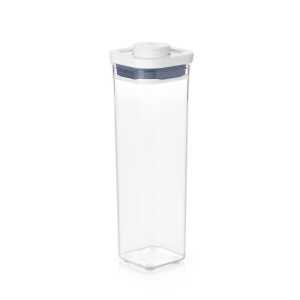 Контейнер Oxo Good Grips Mini 0,8 L (11234100MLNYK) предназначен для хранения сухих сыпучих продуктов. Контейнеры из серии ПОП можно модульно комбинировать, благодаря чему хранение продуктов отлично организовано, а на полках все это выглядит очень эффектно. Версия MINI состоит из узких и неглубоких контейнеров, которые необходимы там, где очень мало места для хранения. Уникальный кнопочный механизм помогает в одно нажатие кнопки на крышке герметично закрывать емкость.