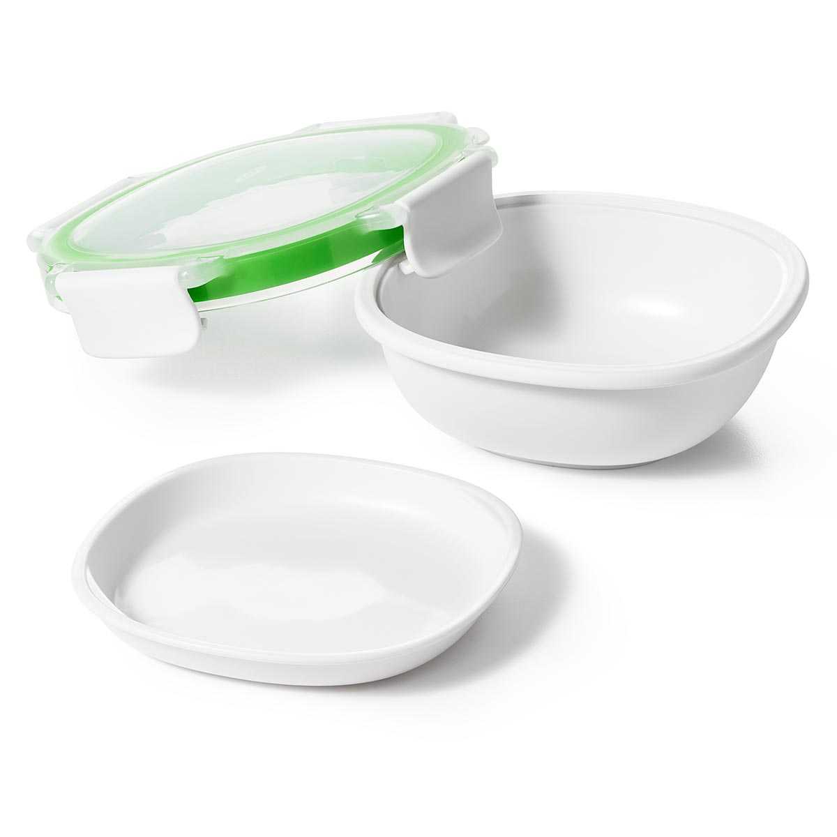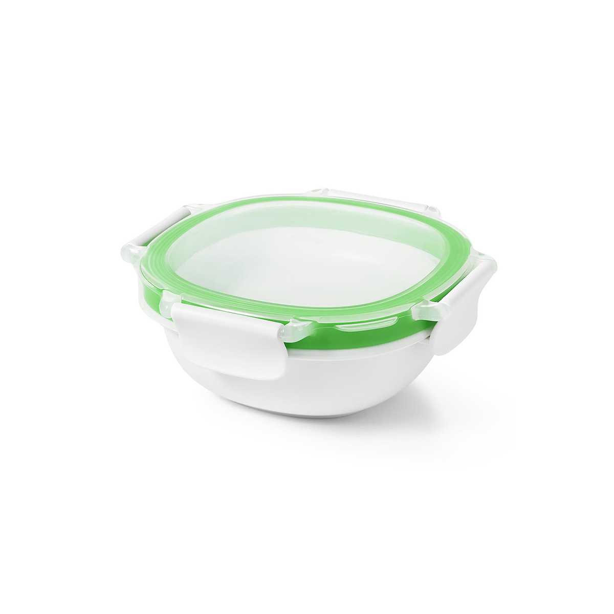 Блюдо изготовлено из материала, который не вступает в реакцию с пищей, не влияет на вкус пищи и отличается исключительной устойчивостью к ударам и поломке. Оснащен силиконовой прокладкой, которую легко снять для очистки. После использования контейнер легко чистится благодаря простой конструкции.