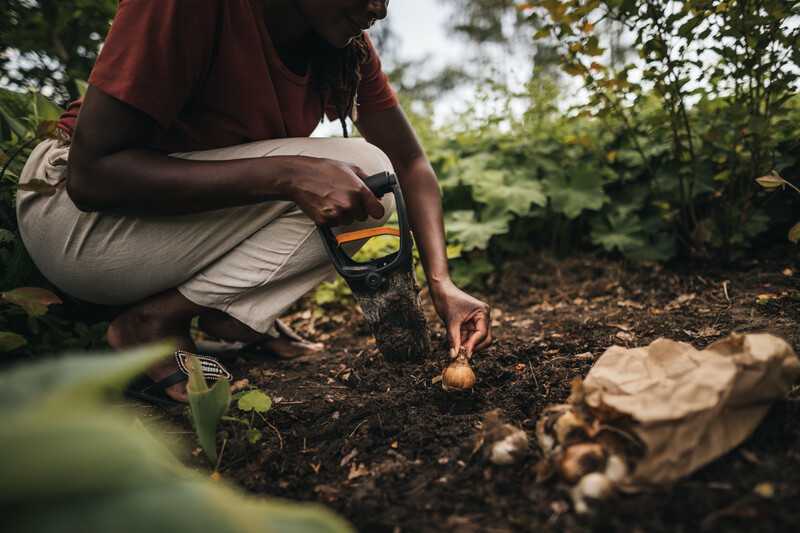 Конус посадковий Fiskars Solid™ (1057079) для швидкої та точної посадки цибулин та розсади. Достатньо повернути сівалку (обертальний рух), а гострі зуби дозволять комфортно і ефективно просвердлити ямки в грунті. Обладнано вимірювачем глибини посадки збоку пристрою, що значно покращує роботу. Зручний спусковий гачок відкриває клинок, висипаючи ґрунт із лунки та цибулини. Призначений для посадки цибулин завширшки до 65 мм і завглибшки до 125 мм. Виготовлений із міцного, атмосферостійкого матеріалу FiberComp™.