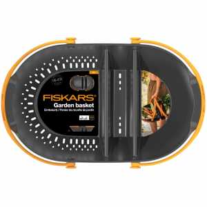 Кошик для збирання врожаю Fiskars Plus (1062831) ідеально підходить для збирання, транспортування та очищення врожаю. Перфорована частина має зливні отвори для миття свіжозібраних культур, а закрита сторона може використовуватися для замочування або транспортування чистих продуктів або інструментів. Ергономічні бічні ручки ідеально підходять для перенесення двома руками, а відкидні язички можна закрити для зручного використання однією рукою.