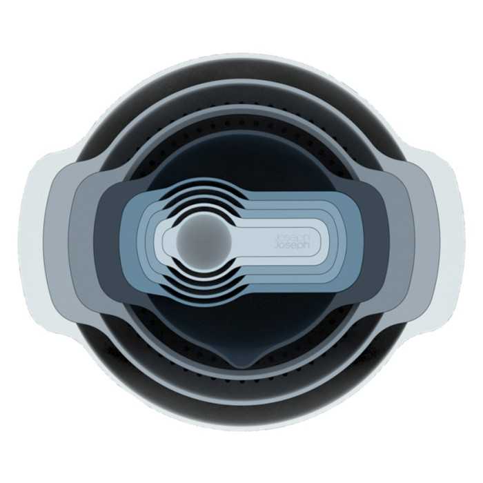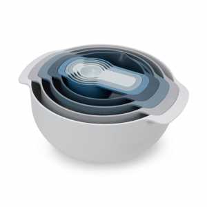 Кухонний набір Joseph Joseph Nest ™ 9 Plus Sky (40101) є кінцевим поєднанням кухонних гаджетів. Все можна легко приготувати за допомогою п'яти мірних склянок, двох чаш для змішування, фільтрувального сита та зливного сита. Nest 9 Plus заснований на п'яти мірних склянках різного розміру, які можна легко зібрати. Різні розміри допускають розміри від чайної ложки (5мл) до 250мл. З п'ятьма мірними склянками більше не потрібне втомливе миття мірної склянки під час приготування. Дві чаші для змішування мають нековзні ніжки та великі ручки, що підвищують комфорт. Найменша з двох чаш має вимірювальну шкалу всередині і носик для точного порціонування. Сітчастий фільтр тонкого очищення та більший зливний сито завершують кухонний гарнітур Nest 9 Plus. Інноваційний дизайн кухонного гарнітура Nest 9 Plus дозволяє легко складати окремі елементи. Завдяки палітрі кольорів кухонний гарнітур Joseph Joseph в такому стані виглядає фантастично.