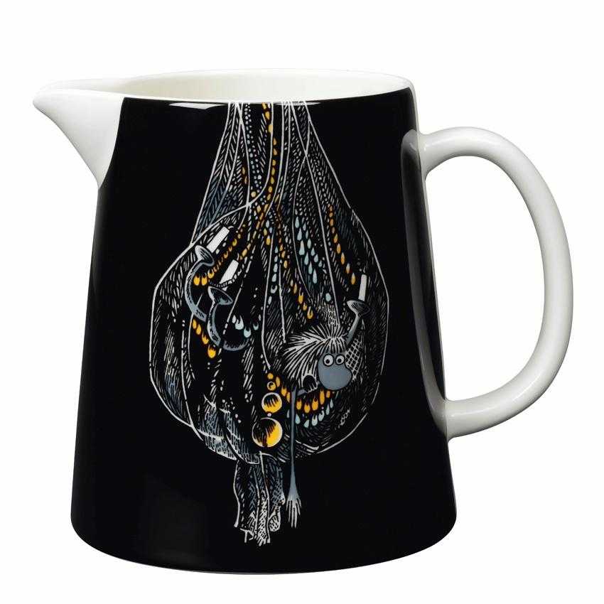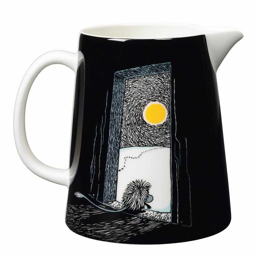 Глечик Arabia Moomin Ancestor 1 L (1020758) із зображенням незвичайного предка мумі-тролів, який живе в їхньому будинку за кахельною піччю. Волосата нічна істота має звичай оновлювати свою вітальню, перевертаючи картини нагору ногами. Ідеально підходить для подачі молока, вершків, шоколаду або ванільного соусу.