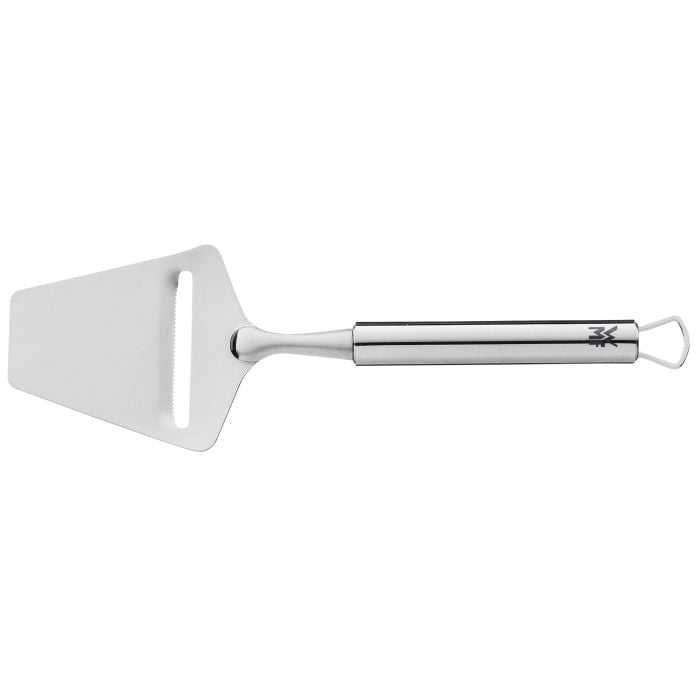 Лопатка для нарезки сыра WMF Profi Plus (18.7136.6030) позволяет получать тонкие ломтики даже из твердого сыра. Изготовлена из полированной нержавеющей стали 18/10 Cromargan protect®, прибор устойчив к повреждениям, царапинам и кислотам, не впитывает запахи, с ручкой для подвешивания на крючок.