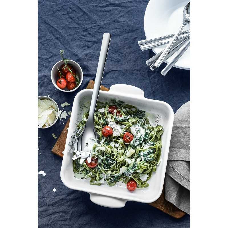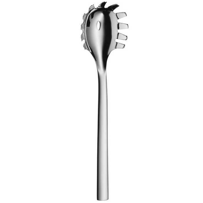 Ложка для пасты WMF Nuova (12.9172.6040) для распределения порций спагетти. Изготовлена для из полированной нержавеющей стали 18/10 Cromargan protect®, прибор устойчив к повреждениям, царапинам и кислотам, не впитывает запахи, с ручкой для подвешивания на крючок.