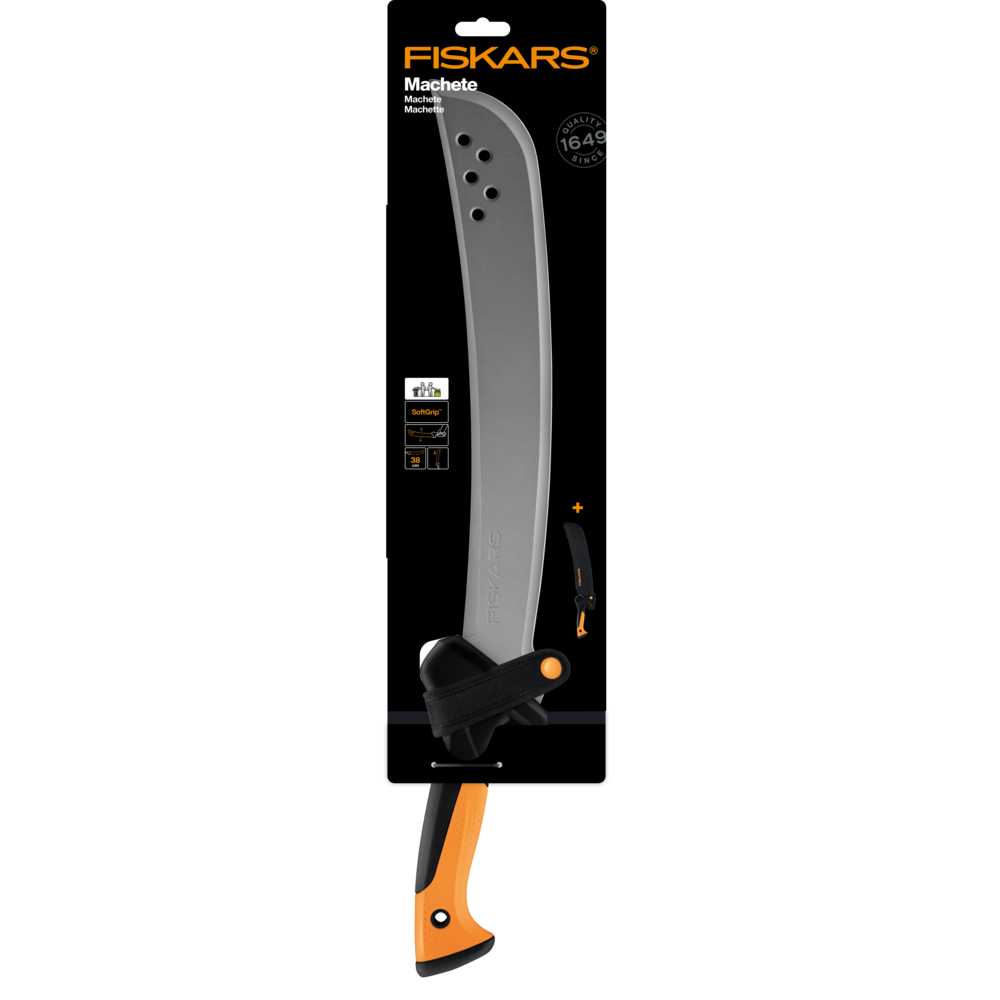Мачете Fiskars Solid™ (1051235) ідеально підходить для скошування великих площ, обрізки товстих гілок, обрізки кори та багато іншого у дворі та саду. Його надгостре, стійке до корозії лезо призначене для різних завдань, дозволяючи вам працювати швидше, залишаючи одну руку вільною для штабелювання гілок і гілок. Його ефективна та зручна рукоятка має оригінальний рельєфний малюнок, який дозволяє вам завдавати точніших ударів, захоплювати середню частину для класичного використання або кінець для різання з максимальною силою. Інструмент також має довге надгостре лезо, яке запобігає його застряванню при різанні товстих гілок.