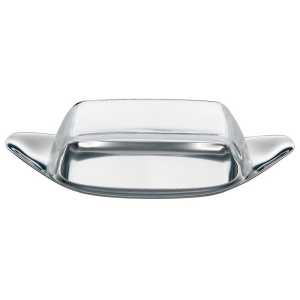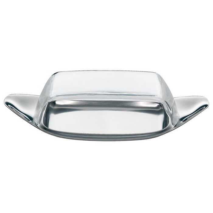 Масленка WMF Wagenfeld (0609559990) сочетает в себе функциональность и эстетику. Cостоит из подставки и прозрачной крышки. Высокие края подставки предотвращают скольжение масла, а ручки по бокам помогают удобно переносить масленку. Также, подставку можно мыть в посудомоечной машине.