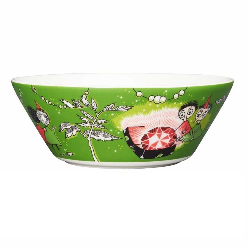 Миска Arabia Moomin Thingumy and Bob 15 cm (1025548) из любимой коллекции муми-троллей Arabia изображает двух крошечных друзей, пораженных сиянием гигантского Королевского Рубина. Иллюстрация Туве Слотт основана на рассказе Туве Янссон «Шляпа фокусника» из 1948 года, где таинственный хобгоблин прибывает в Долину Муми-троллей в поисках величайшего рубина в мире. Поднимет настроение на любой сервировке стола, а их простой дизайн отлично подходит для подачи супа, хлопьев и десертов.