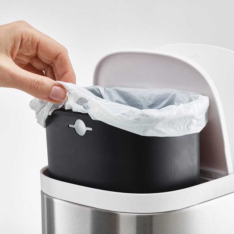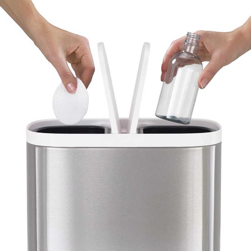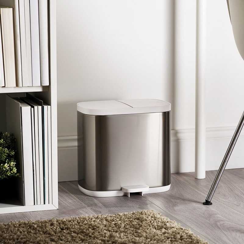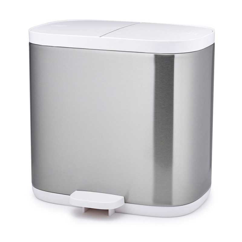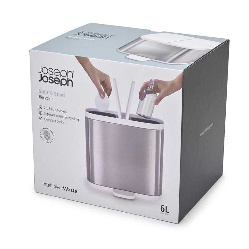 Відро для сміття для ванної кімнати Joseph Joseph Split™ 6 Steel (70520) є ідеальним рішенням для утилізації в невеликому просторі, оскільки воно розділене на два відсіки, що дозволяє розділяти перероблені і не перероблені відходи в рамках однієї компактної конструкції. Багато ванних кімнат і спальні мають обмежений простір, тому наявність окремого відра для сміття тільки для вторинної переробки є рідкісним варіантом. Контейнер оснащений пристроєм педалей для відкривання без допомоги рук, кришками з м'яким закриттям та корпусом із нержавіючої сталі, захищеним від відбитків пальців.