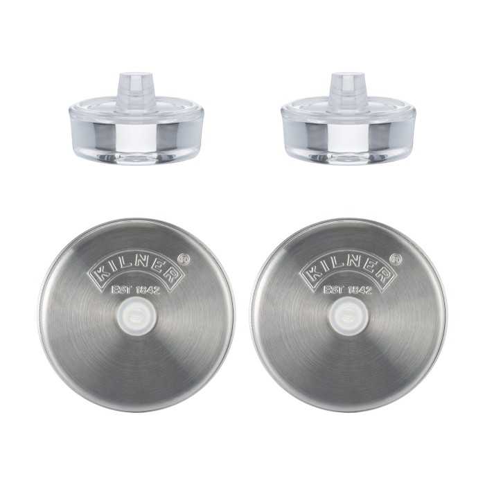 У набір входять: 2 металеві кришки призначених для банок Kilner Preserve Jars, 2 скляні вантажі (використовуються для завантаження вмісту банки, щоб він не піднімався під час бродіння)