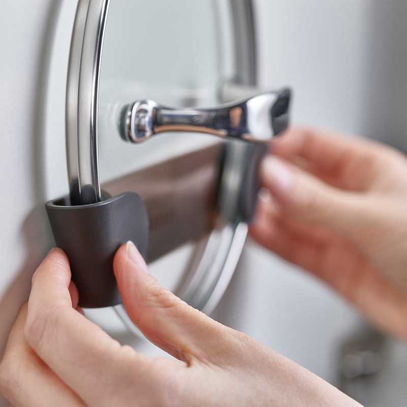 Набір тримачів для кришок Joseph Joseph CupboardStore™ (85149) доступний у практичному наборі із 4 штук. Вони є компактним і організованим рішенням для зберігання кришок каструль. Цей простір також оптимально використовувати для встановлення всередині дверцят шафи. Скоби підходять для кришок діаметром до 32 см. Забезпечують порядок та більше місця у шафах для зберігання речей на кухні.