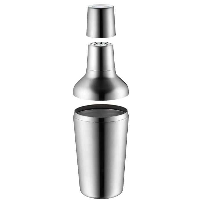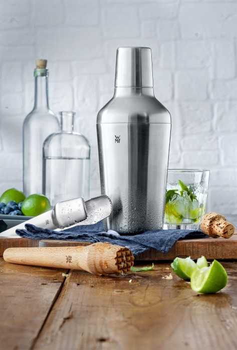 Набор для бара WMF Clever&More (06.3683.6030) состоит из 4 элементов: шейкер, сито, джиггер, щипцы для льда и пестик. Инструменты изготовлены из высококачественной нержавеющей стали Cromargan®, серебристого цвета. Набор складается по типу "Матрёшки" (все части можна сложить в шейкер).