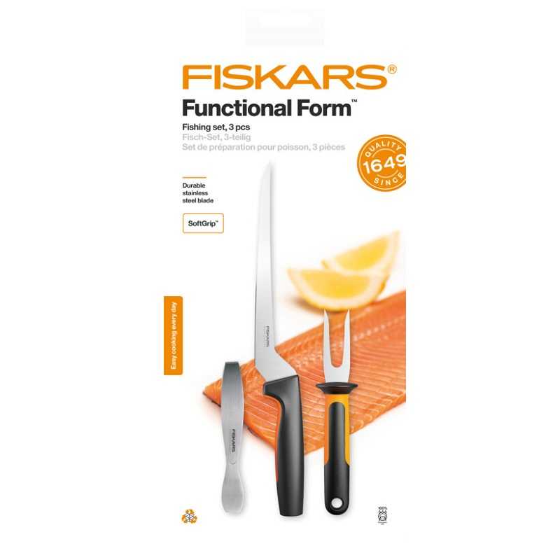 Набір для риби Fiskars Functional Form™ Fishing set (1057560) включає ніж для оброблення філе, вилку для риби і пінцет для зняття кісток.Вага: 238 грСерія: Fiskars Functional FormEAN: 6424002013051