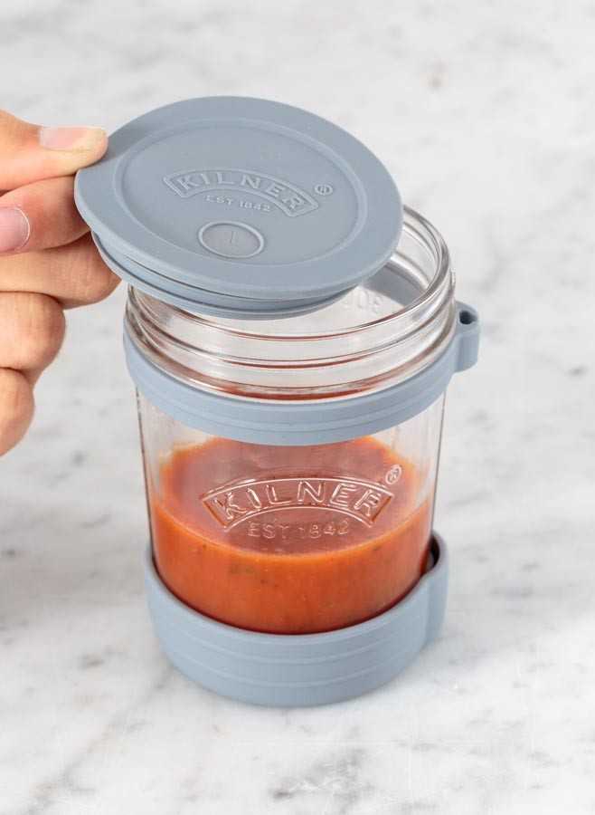 Набор для супа Kilner 0.35 L (0025.011) в комплект входят винтовая крышка, силиконовый колпачок и ложка - все, что нужно для вкусного обеда. Банка объемом 350 мл сделана из стекла, что не меняет вкус супа, как пластиковая посуда. Широкое горлышко позволяет съесть блюдо прямо из емкости. Силиконовая основа обеспечивает нескользящий эффект а практичная ручка позволяет прикрепить ложку. В комплекте также есть крышка с отверстием для выпуска пара, благодаря которому банку можно нагреть в микроволновке. Набор Kilner также подходит для йогуртов, более густых коктейлей или соусов. Он подойдет всем, кто не может пообедать во время работы.