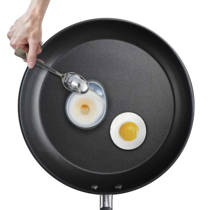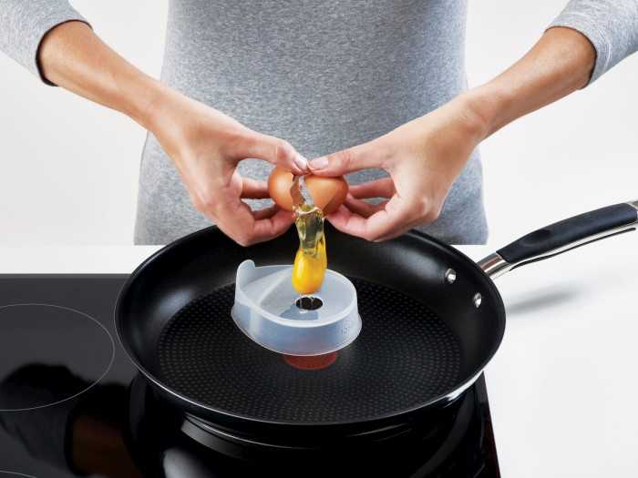 Набір форм для смаження яєць Joseph Joseph Froach Pods™ (20120) пропонує сучасний спосіб приготування яєць із значно меншою кількістю жиру, ніж за традиційної смаження. Покладіть на сковороду з антипригарним покриттям, додайте яйце і трохи води у форму і спостерігайте, як пара готує верхівку а дно сковорода.