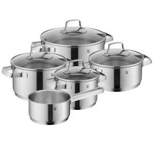 Набор кастрюль WMF Belmonte (0751156040) состоит из 4 кастрюль и сотейника. Дно TransTherm® подходит для всех типов плит, включая индукционные. Изготовлены из нержавеющей стали Cromargan 18/10, устойчивой к повреждениям и действию органических кислот, не изменяют вкусовые качества блюд.