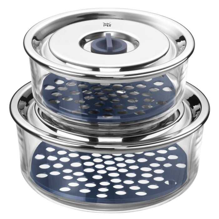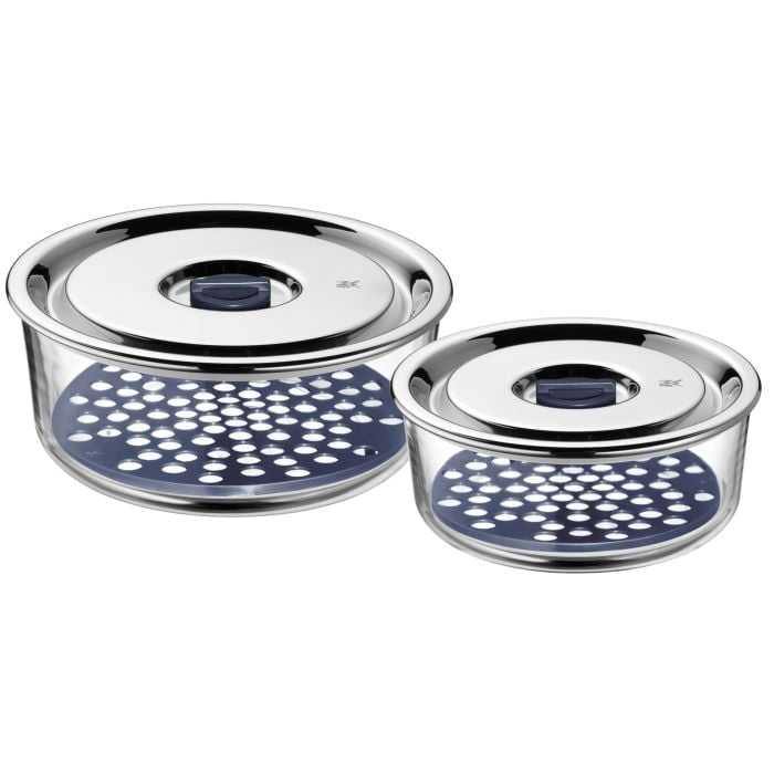 Набор пищевых контейнеров 2 предмета WMF Top Serve (06.5491.6020) состоит из 2-х стеклянных емкостей, каждая из которых оснащена силиконовой вставкой, позволяющей сохранять хранимые продукты / овощи / фрукты свежими в течение длительного времени. Высокое качество, функциональность и стойкость.