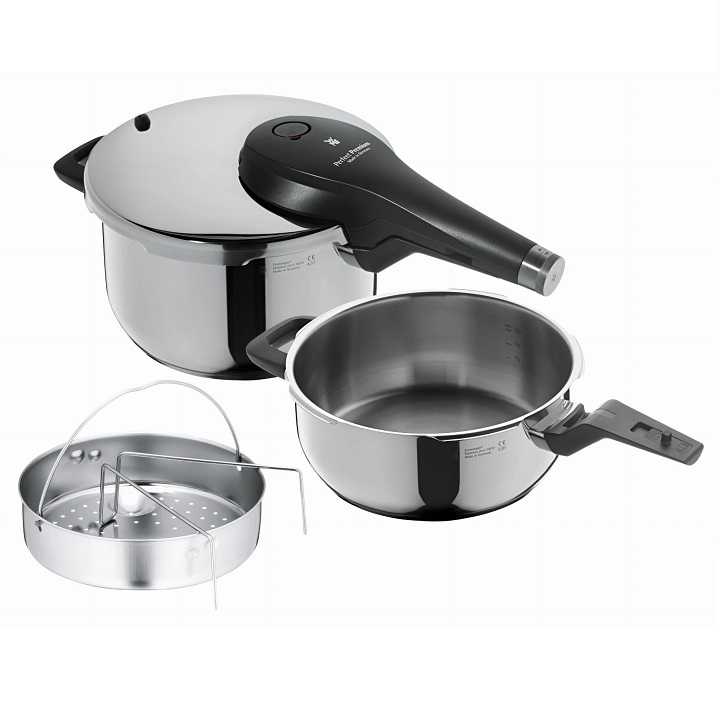 Набор скороварок WMF Perfect Plus 3 л и 4,5 л (0795456040) для приготовления пищи - ускоряют процесс приготовления, уменьшают потерю витаминов. Подходят для варки овощей, рыбы, мяса, для тушения мяса, для приготовления супов и фруктов для консервирования, для стерилизации, например, детских бутылочек. Съемная ручка скороварок легко чистится, система автоматического удаления пара. Скороварка имеет два уровня приготовления: 107 ° C и 115 ° C. Подходит для всех типов плит, в том числе индукционных.