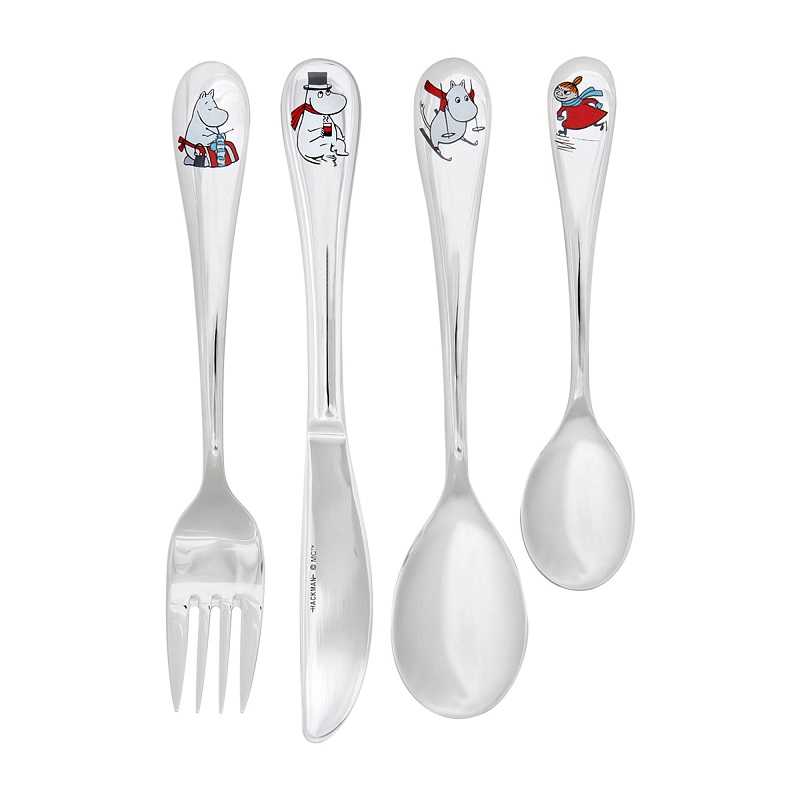 Набор детских столовых приборов Hackman Moomin Winter (1009274) В комплект входят детская вилка, нож, столовая ложка и кофейная ложка. Все столовые приборы Moomin изготовлены из нержавеющей стали и имеют изображения различных персонажей Moomin, основанные на оригинальных изображениях Tove Jansson. Размер и дизайн детских столовых приборов гарантируют, что они просты в использовании. 4 разных персонажа во время зимних каникул: Moominmamma, Moominpappa, Moomintroll and Little My. Набор идеально подходит для самых маленьких, а также приятно подарить в качестве милого подарка.