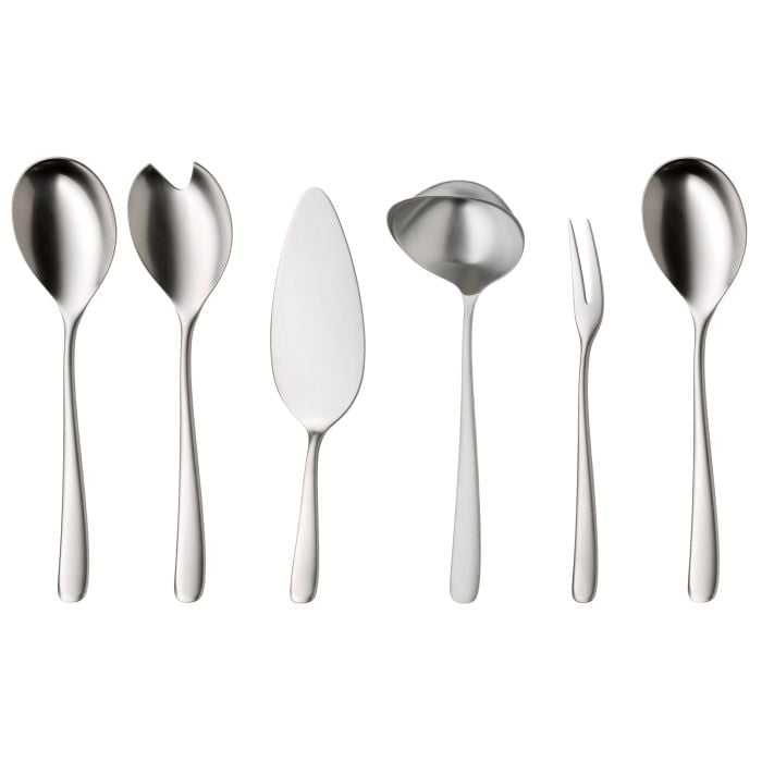 Набір столових приладів WMF Vision 66 предметів (1271006331) може похвалитися подовженою стрункою формою, спокусливими згинами та шовковистою матовою поверхнею – розкішними елементами дизайну, які разом створюють ефект, що незмінно притягує погляди. Цей яскравий дизайн відрізняється ексклюзивною технологією Cromargan Protect®, унікальною обробкою поверхні, що забезпечує виняткову стійкість до подряпин та ознак щоденного використання, а також спрощує догляд. Цей ергономічний набір столових приладів, ретельно виготовлений майстрами, ідеально лягає в будь-яку руку і виготовлений з використанням усіх навичок та ноу-хау, які принесли популярність компанії WMF, включаючи ножі зі вставленими лезами з кованої сталі, які зберігають свою гостроту та еластичність з часом . Його можна мити в посудомийній машині для швидкого та легкого очищення. Він поставляється в гарній коробці для столових приладів для безпечного та зручного зберігання.