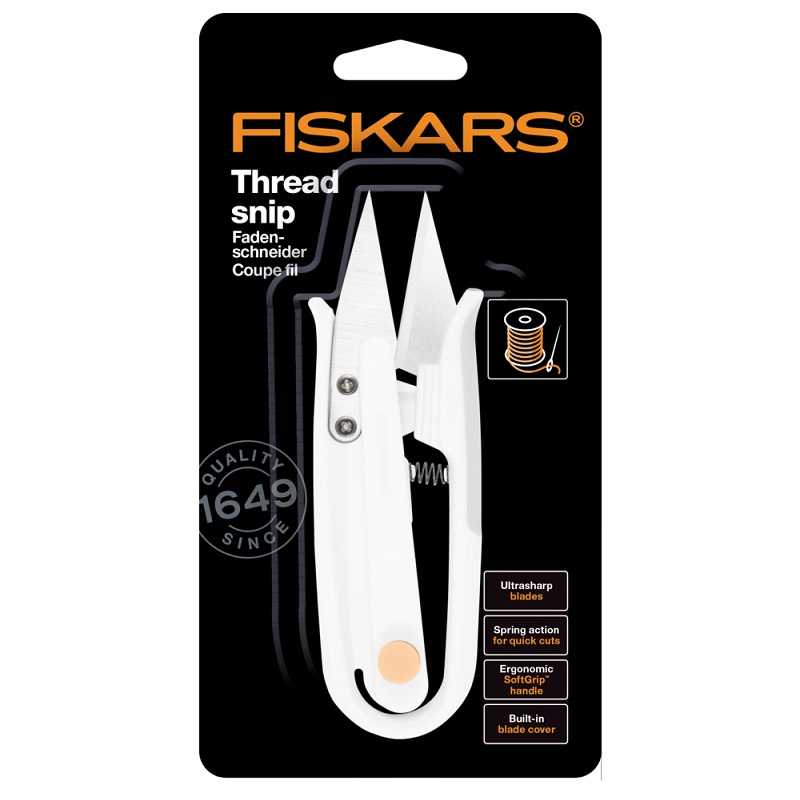Ножиці для ниток Fiskars Softgrip™ (1059562) мають дуже гострі леза з нержавіючої сталі для обрізання ниток, стрічок та пряжі. Конструкція поворотної пружини дозволяє виконувати швидкі розрізи. Ергономічна ручка із поверхнею SoftGrip™.