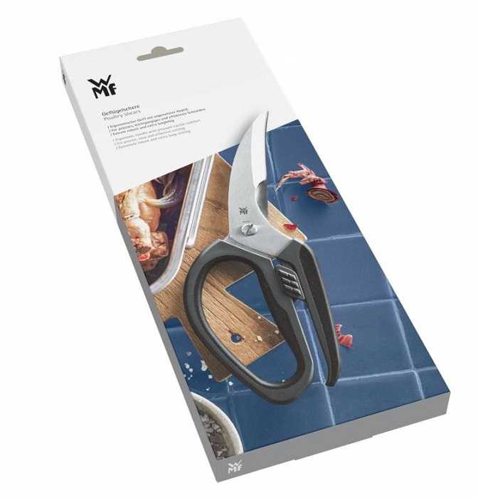 Ножницы для птицы WMF (18.8320.6030) облегчат порционирование птицы, идеально подходят для снятия шкуры, разделки и резки птицы и дичи. Но не только кожа, сухожилия и плоть могут быть легко и аппетитно вырезаны таким образом - выемка на лезвии также способствует разрушению костей. Мягкий изгиб лезвия продолжается в большой петле рукоятки, что позволяет безопасно и точно разрезать как левой, так и правой рукой. Большой палец управляет затвором - таким образом, сила от руки оптимально передается ножницам, что облегчает резку.