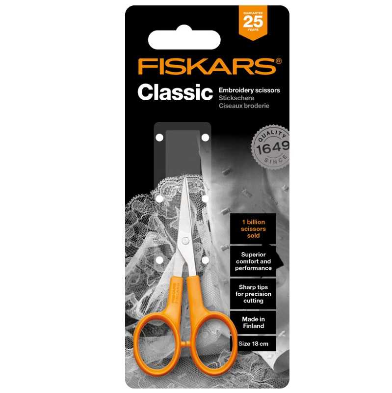 Ножиці для вишивання Fiskars Classic 10 см (1005143)Довжина: 100 ммВага: 13 гСерія: Fiskars ClassicEAN: 6411501980700