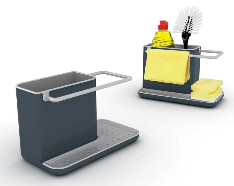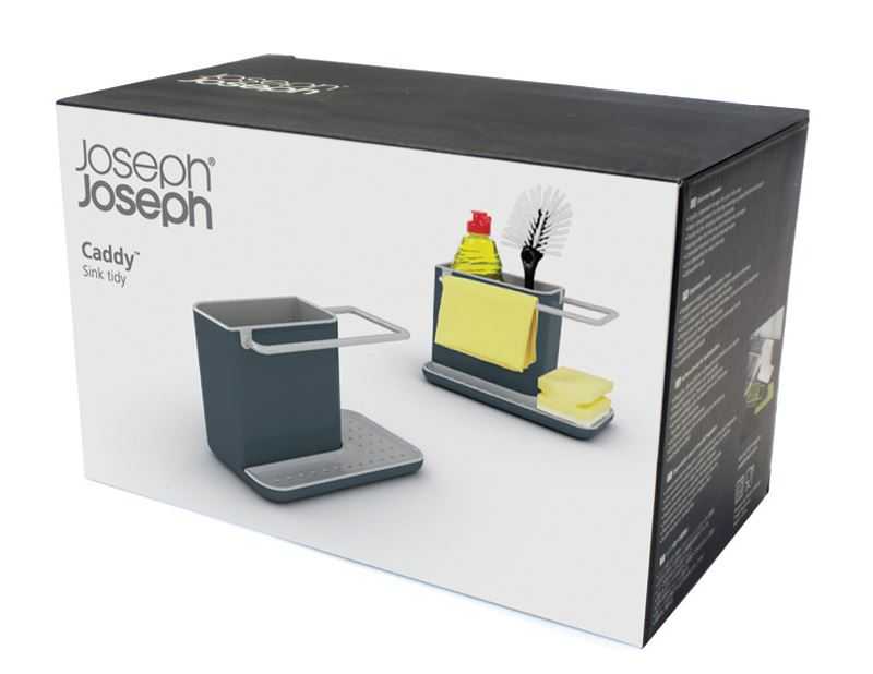 Органайзер для раковини Joseph Joseph Caddy™ (85022) ідеально підходить для організації посудомийного приладдя, містить окремі відсіки для пляшки з рідиною для миття посуду та щіток. Спеціальна вішалка для вологої тканини та місце для губки зі зливом, завдяки якій губка сохне та вода збирається у контейнері під нею. Весь контейнер можна легко розкласти для чищення. Ідеальне рішення, якщо довкола раковини не так багато місця.