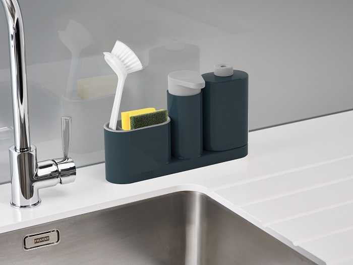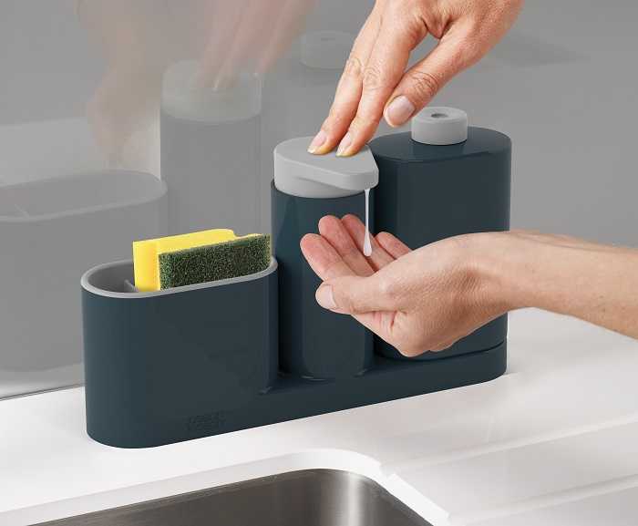 Органайзер для раковины Joseph Joseph SinkBase™ Plus - Grey (85091), можно использовать для организации посудомоечных принадлежностей, содержит диспенсер для жидкости с насосом и отдельный контейнер для жидких моющих средств. Весь контейнер можно легко разложить для очистки. Идеальное решение, если вокруг раковины не так много места.