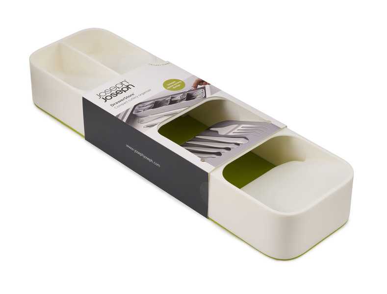 Органайзер для столовых приборов Joseph Joseph DrawerStore™ (85141) компактен, изготовлен из высококачественной пластмассы. Уникальный дизайн - столовые приборы расположены под углом, поэтому все занимает меньше места, перегородки, украшенные значками столовых приборов для легкой идентификации, где найти, что найти. Оснащен нескользящими ножками.