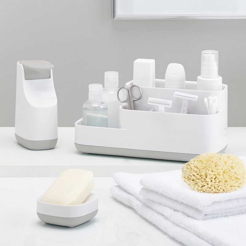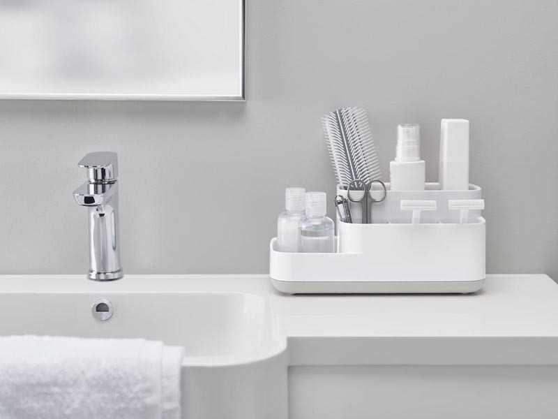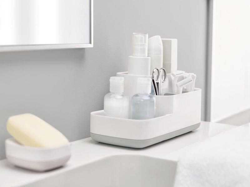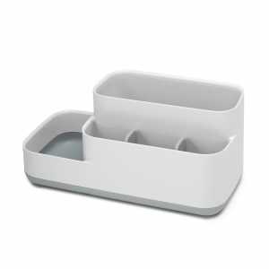 Органайзер для ванної кімнати Joseph Joseph EasyStore™ Grey (70513) забезпечує стильне та організоване зберігання ванної кімнати. Різні відділення різного розміру, форми та глибини дозволяють сортувати предмети ванної кімнати на свій смак. Зубні щітки, макіяж, креми або ножиці можна легко класифікувати і вони завжди під рукою. Дизайн функціональний, простий і вражає своїм гармонійним поєднанням кольорів, який відмінно впишеться в будь-яку ванну кімнату. Нековзне покриття на дні контейнера забезпечує необхідну стійкість на часто вологих і гладких поверхнях ванної кімнати.