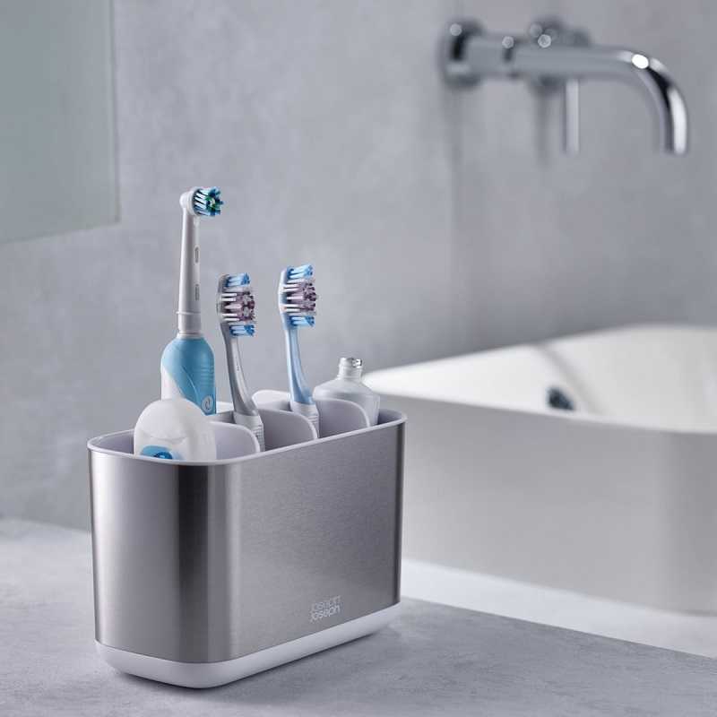 Органайзер для зубних щіток Joseph Joseph EasyStore™ Steel (70531) є чудовим доповненням до ванної та надає місце для зубної щітки, зубної пасти або зубної нитки. Завдяки різним відділенням контейнер можна легко розділити між членами сім'ї, так що кожен матиме свій простір.