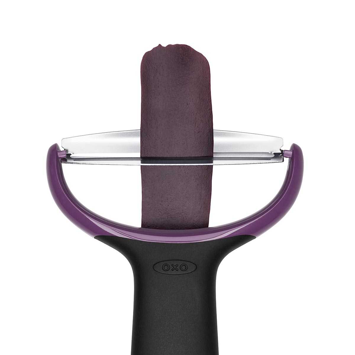 Овочечистка OXO Good Grips (11244500) тонко очищає овочі навіть із товстою шкіркою. Ніж оснащений широкою, ергономічною ковзкою ручкою і гігієнічним і міцним зубчастим лезом з японської нержавіючої сталі.