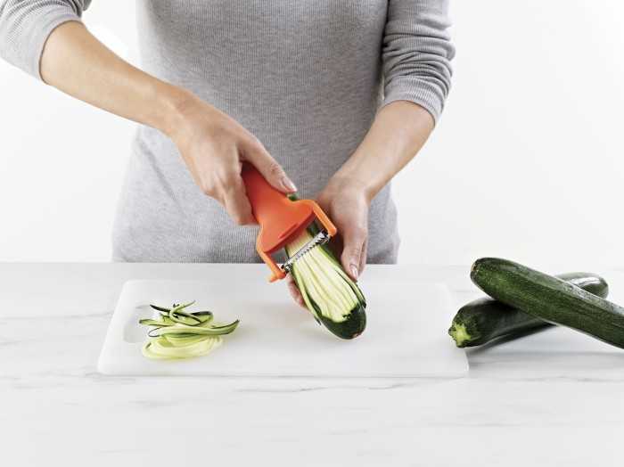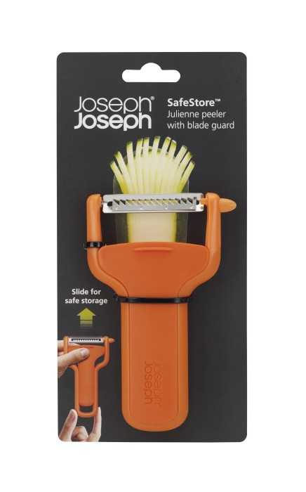 Овочечистка із захистом леза Joseph Joseph SafeStore™ (20168) оснащена вбудованим захистом леза. Після використання захист можна просто надіти на лезо для зберігання, щоб ручка в ящику була у безпеці. Завдяки гострому лезу з нержавіючої сталі та Y-подібному дизайну ідеально підходить для чищення моркви, огірків, кабачків та ін. Доступна з прямим або рифленим лезом.