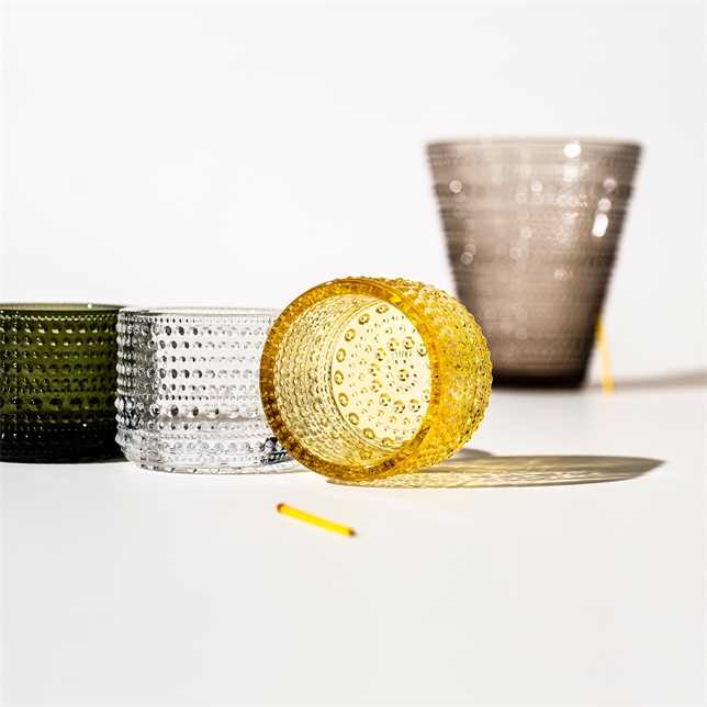 Легенда фінського дизайну Ойва Тойкка вивчала способи приховати сліди стиків на склі, коли він винайшов новаторський дизайн з піднятими краплями, який робить Kastehelmi таким відмінним. Kastehelmi (фінською «крапля роси») являє собою кола витончених скляних бульбашок, створених так, щоб нагадувати нитки крапель роси, що сяють під ранковим сонцем. Кожен виріб грає зі світлом таким чином, що по-справжньому демонструє красу скла, що відображає.