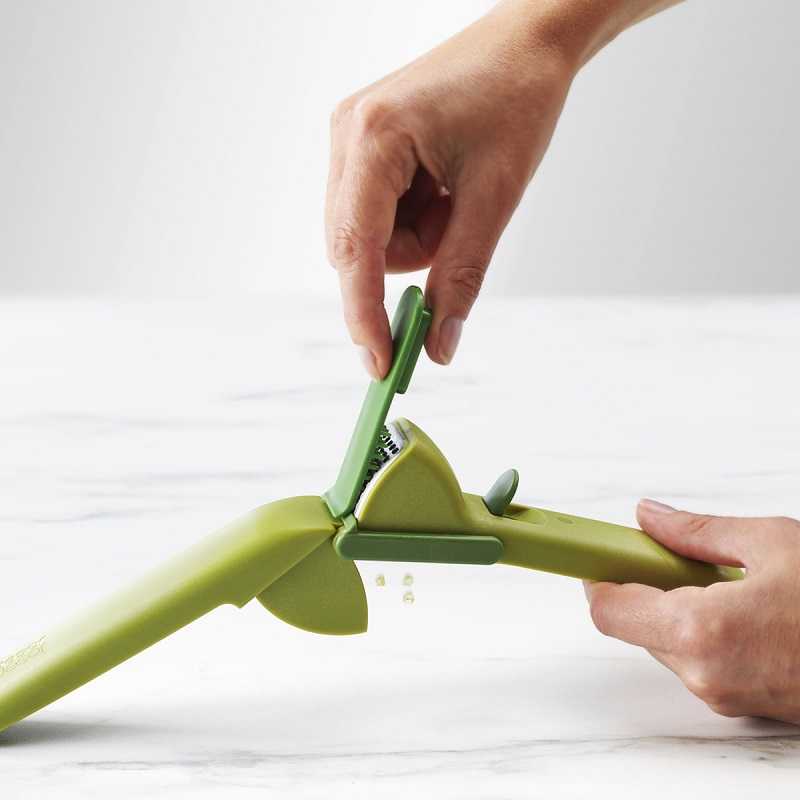 Прес для часнику Joseph Joseph CleanForce™ (20179) подрібнює часник без особливих зусиль і легко очищається за допомогою протирочного леза та практичного інструменту для чищення. Щоб видалити подрібнений часник, просто натисніть на гачок для спуску і начисто протріть притискну пластину. Залишки часнику, що залишилися в пресі, можна легко видалити за допомогою пристрою для очищення, розташованого в ручці. Воно має міцну щетину з одного боку для очищення отворів у плиті преса та закруглений край, який можна використовувати для видалення залишків шкірки з пресу.
