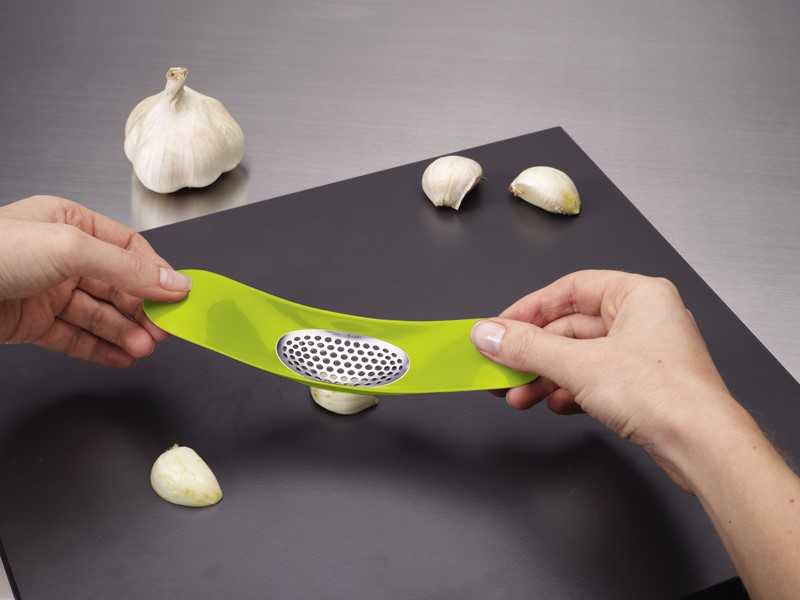 Прес для часнику Joseph Joseph Rocker™ (20062) спрощує виконання складного завдання: за допомогою тиску та розгойдування зубчики часнику швидко та ефективно ріжуться та проштовхуються через перфоровані ґрати. Після подрібнення шматки утримуються в поглибленні, тому їх можна без проблем обробляти надалі. Тепер ви можете вийняти з преса часник видавлений ложкою. Коли ви закінчите, Rocker можна промити під проточною водою.