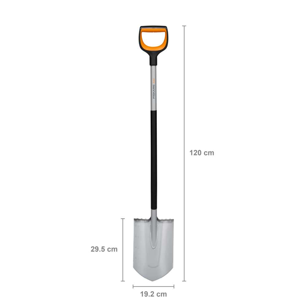 Штикова лопата Fiskars Xact™ (1066729) має лезо з бористої сталі, міцно приварене до гладкої сталевої ручки, яку легко тримати. Надміцна загострена лопата з нековзним протектором заточена з обох боків, тому вона легко проникає у твердий ґрунт. Ручка SoftGrip™ D-подібної форми забезпечує надійний контроль. Рукоятку цієї продуманої лопати оптимізовано з погляду ергономіки. Інструменти Fiskars Xact™ адаптовані до вашого тіла та виготовлені з легких, але дуже міцних матеріалів.