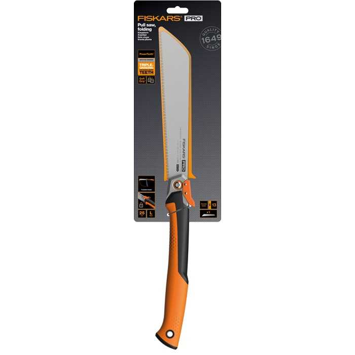 Складна пилка Fiskars Pro PowerTooth™ 250 мм 13 tpi (1062933) складається та фіксується для чудового захисту леза та безпеки