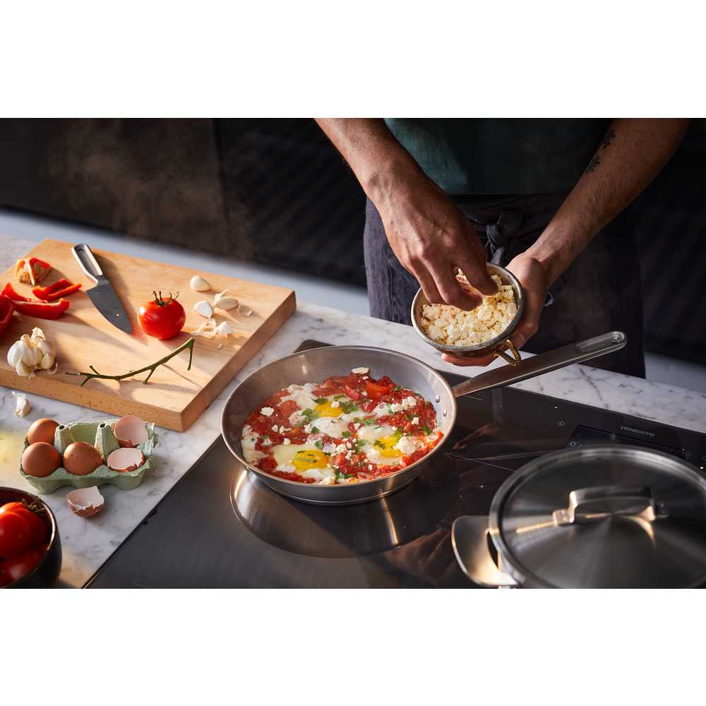 Сковорода Fiskars All Steel 26 cm (1064744) виготовлена з переробленої нержавіючої сталі. Антипригарне покриття Ceratec™ чудово підрум'янює їжу, не виділяючи фтору та інших шкідливих сполук. Товсте тришарове дно оптимізовано для рівномірного розподілу тепла на всіх типах варильних панелей. Також можна використовувати в духовці до 270 градусів. Виготовлена з 90% переробленої сталі, його вуглецевий слід на 92% нижчий, ніж у середньому по галузі. Гарне матове оздоблення вимагає меншої кількості виробничих матеріалів. Виготовлено для скорочення відходів на 80%, мінімізації пилу та матеріалів, пов'язаних із виробництвом.