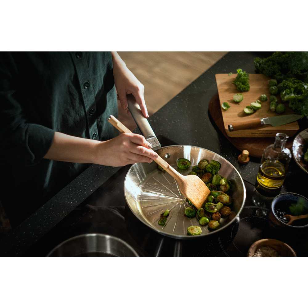 Сковорідка Fiskars Norden 28 cm (1067629) з нержавіючої сталі без покриття має товсте дно та цільну конструкцію, що гарантує гарний розподіл тепла по всій сковороді. Ідеально підходить для високих температур, для смаження та підрум'янювання інгредієнтів навіть у невеликих кількостях. Алюмінієвий сердечник, укладений між двома шарами сталі, гарантує регулярне та ефективне нагрівання при всіх типах пожеж. Текстуроване дно забезпечує чудовий розподіл олії під час приготування. Залізна ручка обмежує передачу тепла для безпечного використання. Максимальна температура для смаження або запікання: 270 °C.