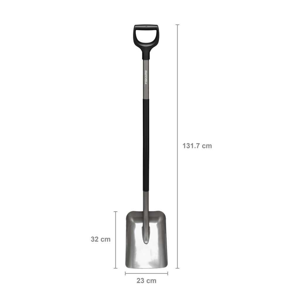 Совкова лопата Fiskars Ergonomic™ (1070058) оснащена широким ковшем, що дозволяє легко переміщати сипучі матеріали, такі як гравій, пісок та грунт. Унікальна D-подібна форма рукоятки забезпечує зручний та надійний хват. Сталева ручка краплеподібної форми із пластиковим покриттям надзвичайно міцна, забезпечує максимальну міцність захоплення та ізолює від холоду, а точний кут ходу ще більше підвищує комфорт та продуктивність. Міцне зварне з'єднання між міцним ковшем із бористої сталі та ручкою забезпечує міцність при перенесенні важких матеріалів.
