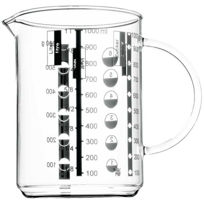 Стакан мерный WMF Gourmet (06.0597.2000) со шкалой измерения в литрах, миллилитрах, чашках и граммах. Можно мыть в посудомоечной машине.Емкость: 1 лЦвет: прозрачныйМатериал: термостойкое стеклоКоллекция: WMF GourmetEAN: 4000530573193