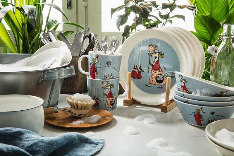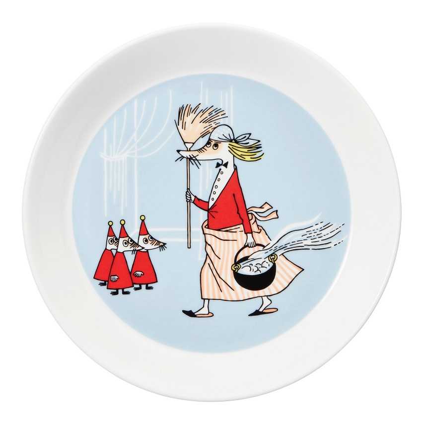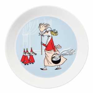 Тарелка Arabia Moomin Fillyjonk 19 cm (1057218) в новом мотиве взятом из сериалов «В конце ноября» (1970) и «Ухаживание Фаддлера» (1959). Мотив показывает Филиджонк в лучшем виде, когда она убирает весь дом. Оригинальные рисунки выполнены Туве Янссон, а дизайн - Туве Слотте. Новый мотив Муми-троллей также можно найти на миске и кружке.