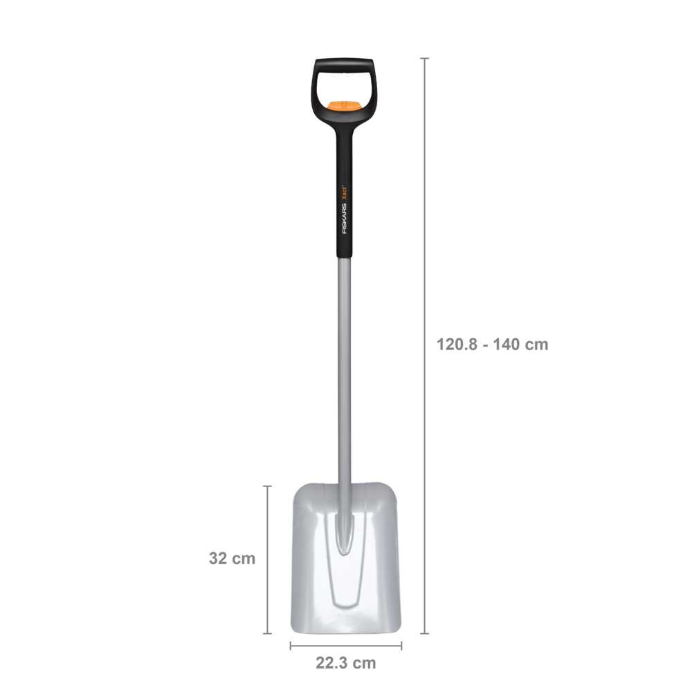 Телескопічна совкова лопата Fiskars Xact™ (1066734) оснащена ручкою, що регулюється по довжині, яка ідеально підходить для користувача. Головка з боровмісної сталі надійно приварена до інтелектуальної телескопічної рукоятки з композитної сталі, яка може висуватися від 120,8 до 140 см. Широка лопата, розташована під кутом, дозволяє легко переміщати сипучі матеріали, такі як грунт, пісок, гравій та інші матеріали. Двотактна рукоятка SoftGrip™ забезпечує гарантований контроль копання. Інструменти Fiskars Xact™ працюють із вашим тілом, поєднуючи ідеальну довжину з легкими, але дуже міцними матеріалами.