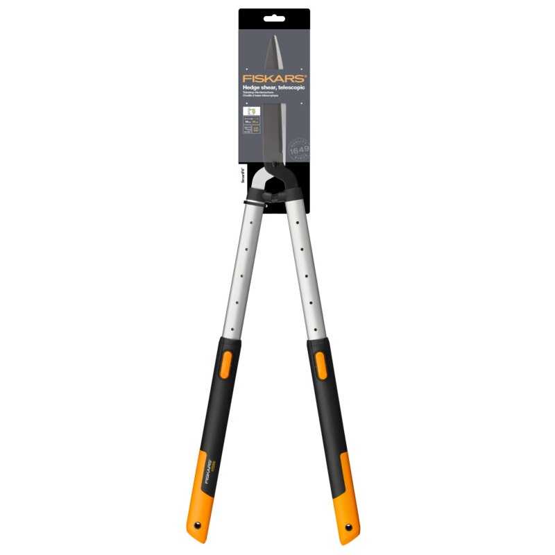 Телескопічні ножиці для живоплоту Fiskars SmartFit HS86 (1013565) з унікальною системою важелів, яка збільшує силу різання до 3,5: 1. Комбінація пробки TruGrip та нековзного покриття SoftGrip на кінцях ручок гарантує надійне захоплення. Технологія TruEdge забезпечує точний і чистий різ завдяки прецизійним сталевим лезам із загартованої сталі та покриттю, що мінімізує тертя.