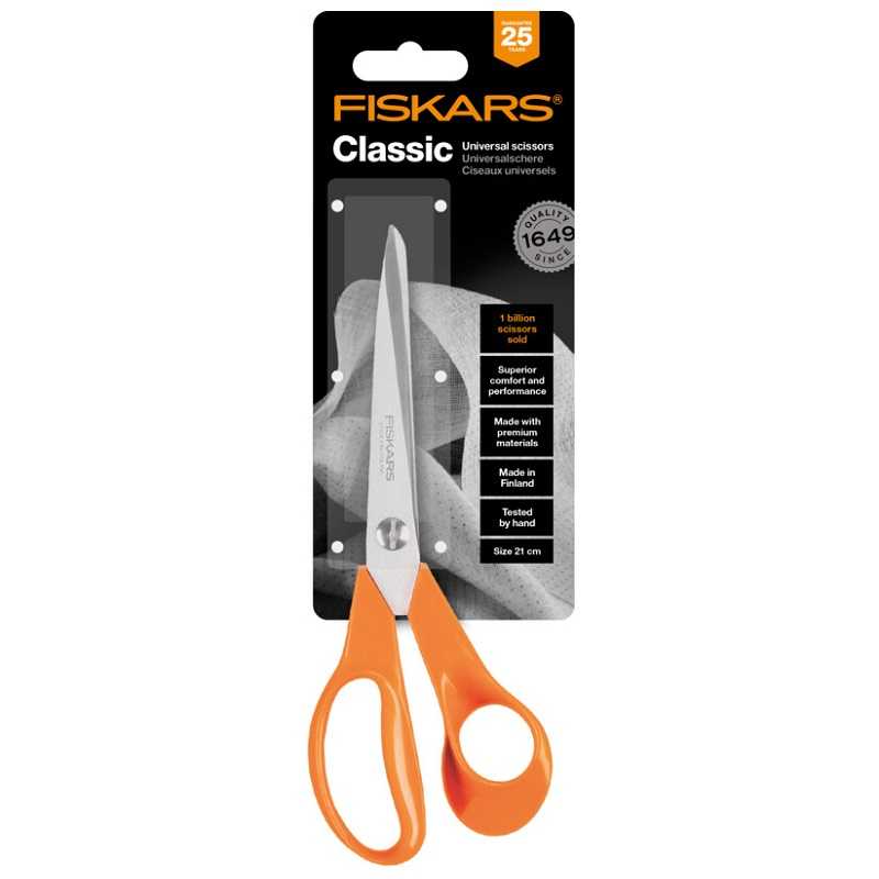 Универсальные ножницы общего назначения Fiskars Classic Scissors Universal purpose (9853), идеально подходят для всех видов работ по дому, в школе и офисе.